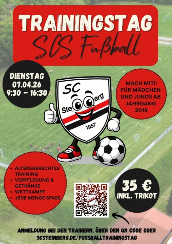Auch heuer gibt es beim SC Steinberg wieder einen Trainingstag für Mädchen und Jungs im Jahrgang 2008 – 2018. Die Jugendtrainer hoffen auf rege Teilnahme und freuen sich auf einen schönen Tag mit dem SCS Nachwuchs 🔴⚫️🔴